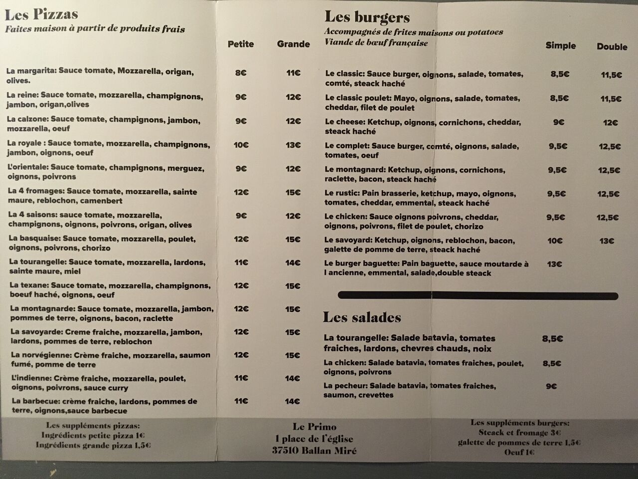 Garez votre voiture confortablement dans notre parking gratuit. Vos animaux sont les bienvenus. Réservez donc une table. Nous serions heureux de vous accueillir dans notre restaurant confortable. Il vous suffit de nous contacter par tél. en appelant le +33247787337. Nous acceptons les paiements sans contact, la MasterCard, les tickets repas, la VISA, le Ticket Restaurant®, les cartes de débit, l’Apple Pay et la Maestro. En outre, vous pouvez bien sûr toujours payer en espèces. Nous pouvons aussi vous emballer vos plats à emporter. Nous organisons aussi des événements privés. Veuillez nous contacter pour de plus amples informations et des réservations. Le dimanche est notre jour de repos. Nous serons heureux de vous servir tous les autres jours de la semaine.